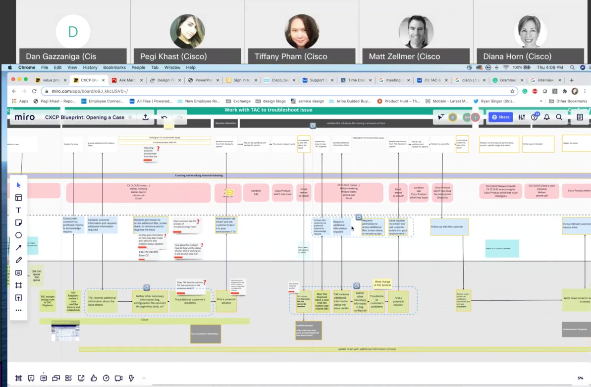 1st Co-design Workshop: I planned and held a series of co-design workshops with stakeholders. The goal was to define the current-state experience of the Cisco support case manager and analyze the experience: identify critical moments, breakdowns, pain points, timelines, and KPIs for each phase.